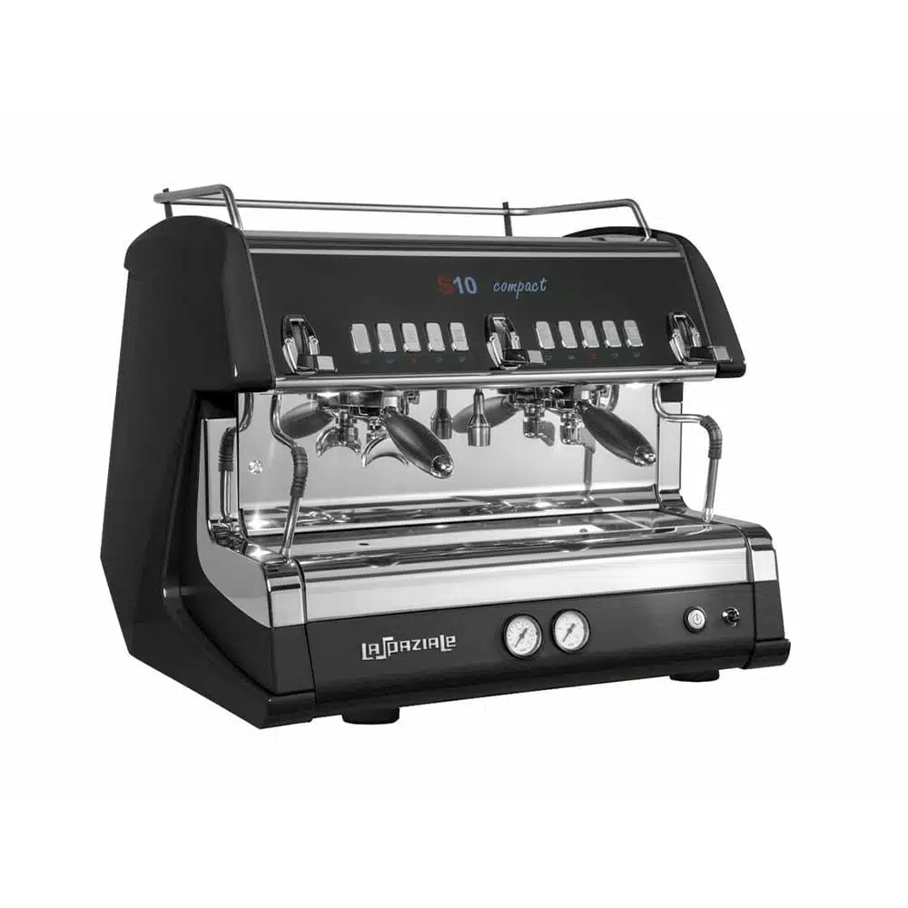 The La Spaziale S10 spazio 2 Group Compact is a space-saving traditional espresso machine designed for smaller commercial settings. With dual group heads, PID temperature control and a powerful boiler, it delivers consistent, barista-quality coffee in a compact footprint. Ideal for cafés, restaurants, and smaller coffee setups, it combines Italian engineering with intuitive operation. The sleek black gloss finish adds a professional touch, while programmable features support efficient service. Built for reliability and performance, the S10 Compact is perfect for businesses seeking premium espresso output without compromising on space or quality.