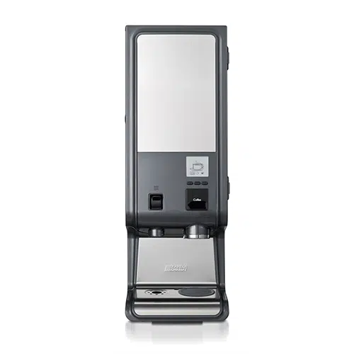 Provided with one canister for coffee or chocolate and a separate hot water tap for, tea or soup. Mains water connection is required for this machine. Additionally, the machine has been equipped with digital control, plastic drip tray, automatic descale indicator and rinsing programme.